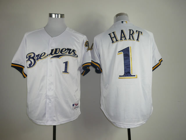 Men Milwaukee Brewers #1 Hart White MLB Jerseys