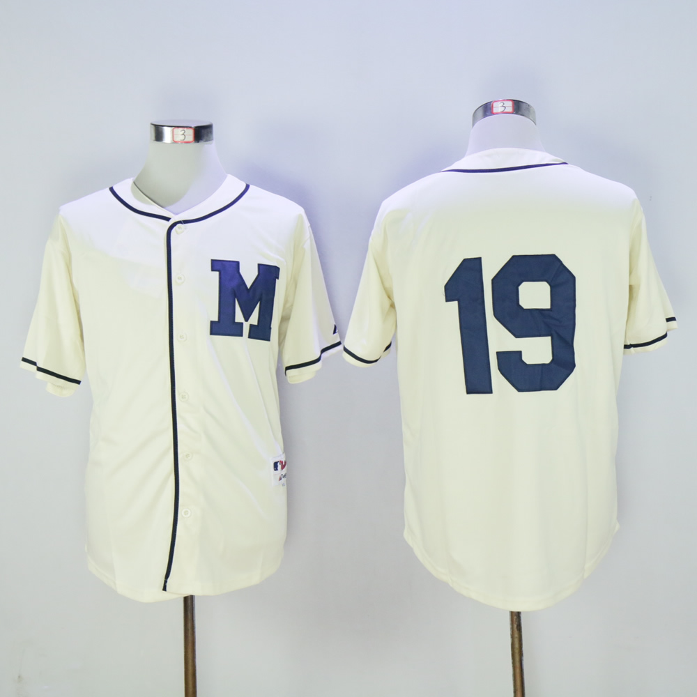 Men Milwaukee Brewers #19 Yount Cream Throwback 1913 MLB Jerseys