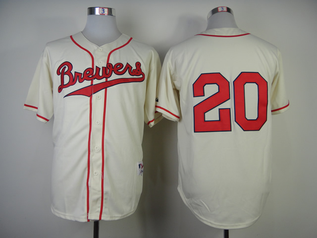 Men Milwaukee Brewers #20 Lucroy Cream MLB Jerseys