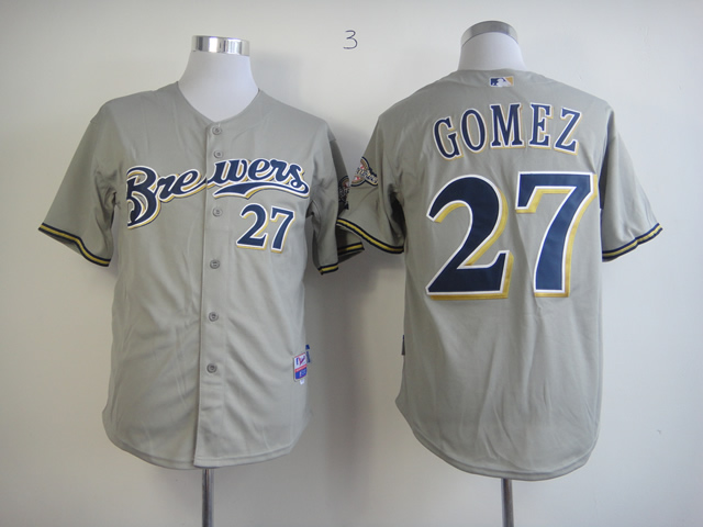 Men Milwaukee Brewers #27 Gomez Grey MLB Jerseys