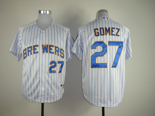 Men Milwaukee Brewers #27 Gomez White Stripe MLB Jerseys