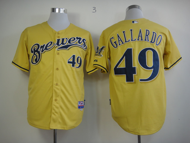 Men Milwaukee Brewers #49 Gallardo Yellow MLB Jerseys