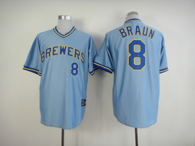 Men Milwaukee Brewers #8 Braun Blue Throwback MLB Jerseys
