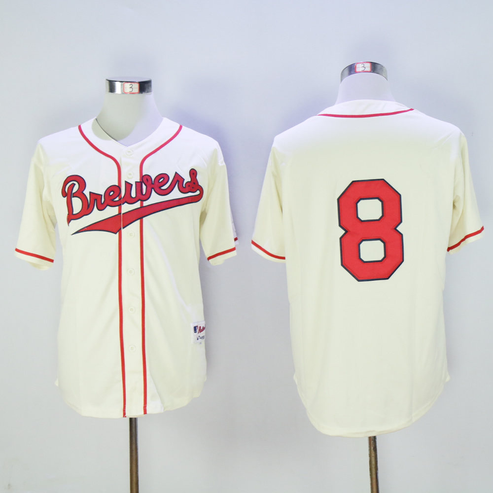 Men Milwaukee Brewers #8 Braun Cream Throwback MLB Jerseys