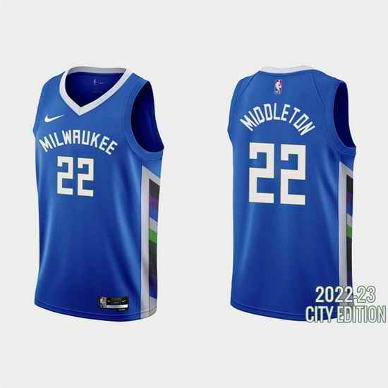 Men Milwaukee Bucks #22 Khris Middleton 2022 23 Blue City Edition Stitched Basketball Jersey