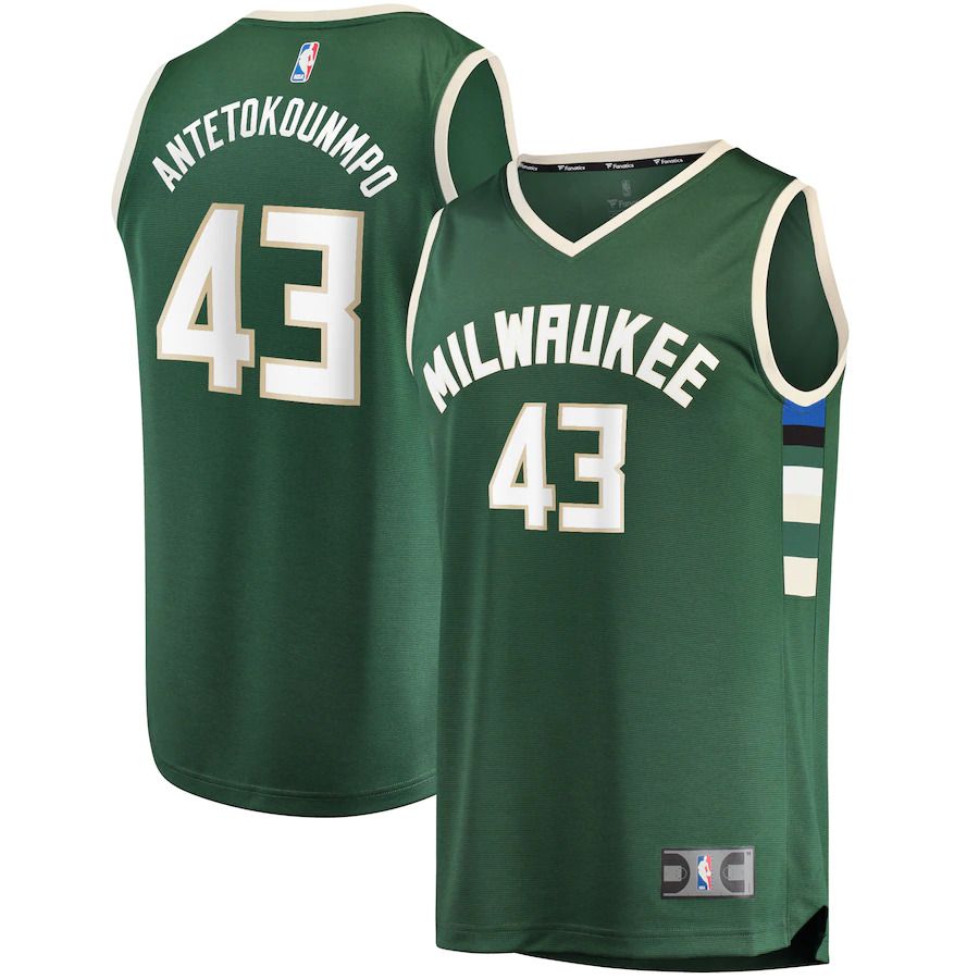 Men Milwaukee Bucks #43 Thanasis Antetokounmpo Fanatics Branded Hunter Green Fast Break Replica Player NBA Jersey