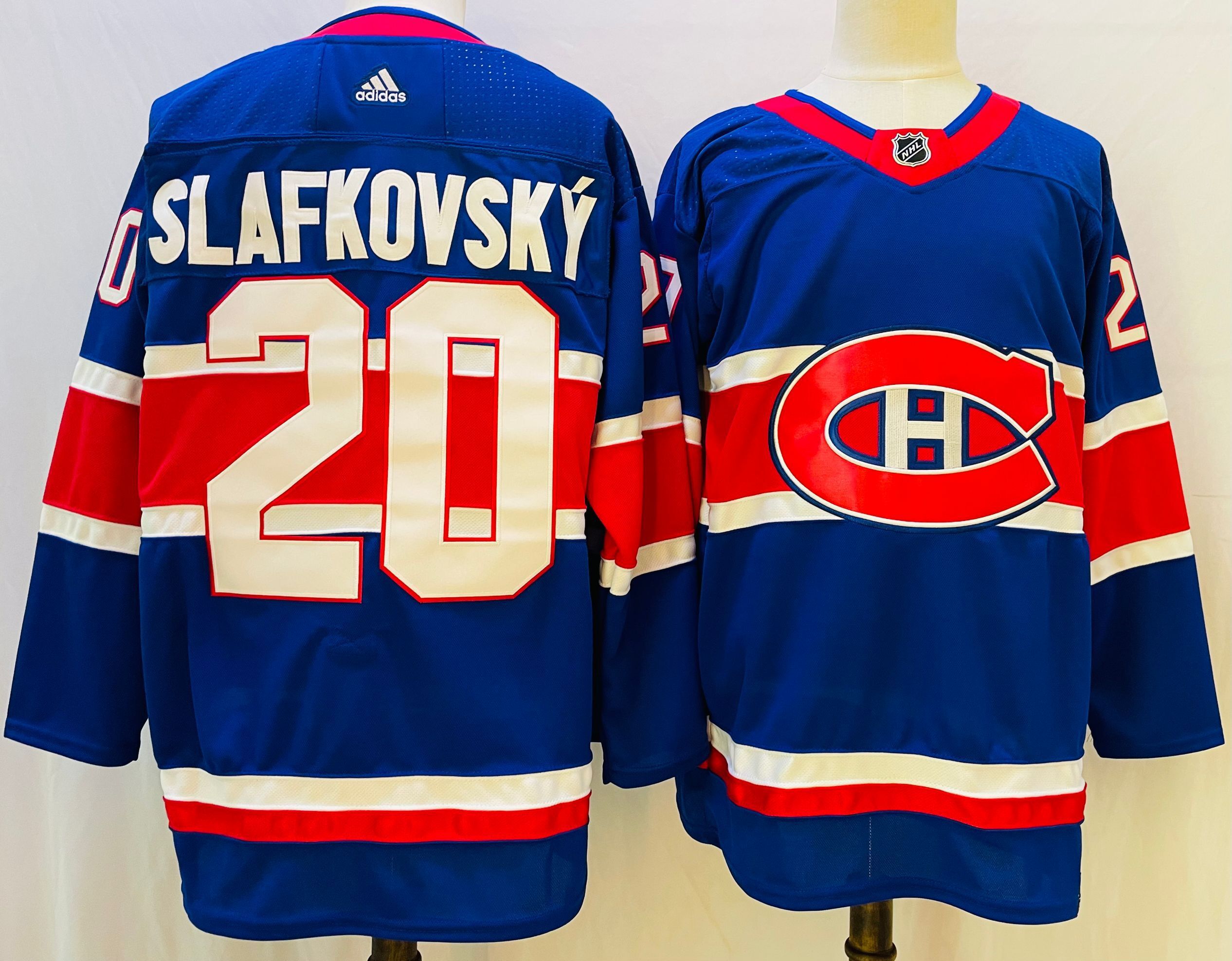 Men Montreal Canadiens #20 Slafkovsky Blue Throwback 2022 Adidas NHL Jersey