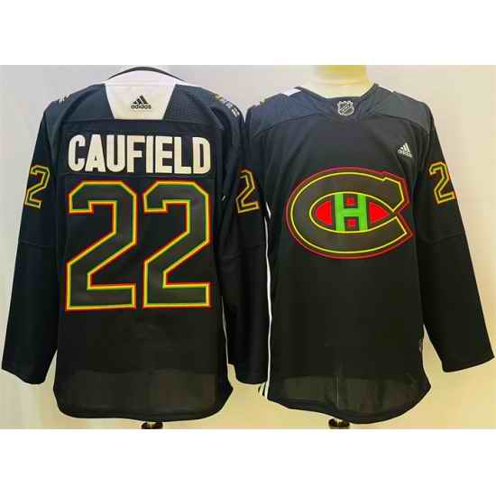 Men Montreal Canadiens #22 Cole Caufield 2022 Black Warm Up History Night Stitched Jersey