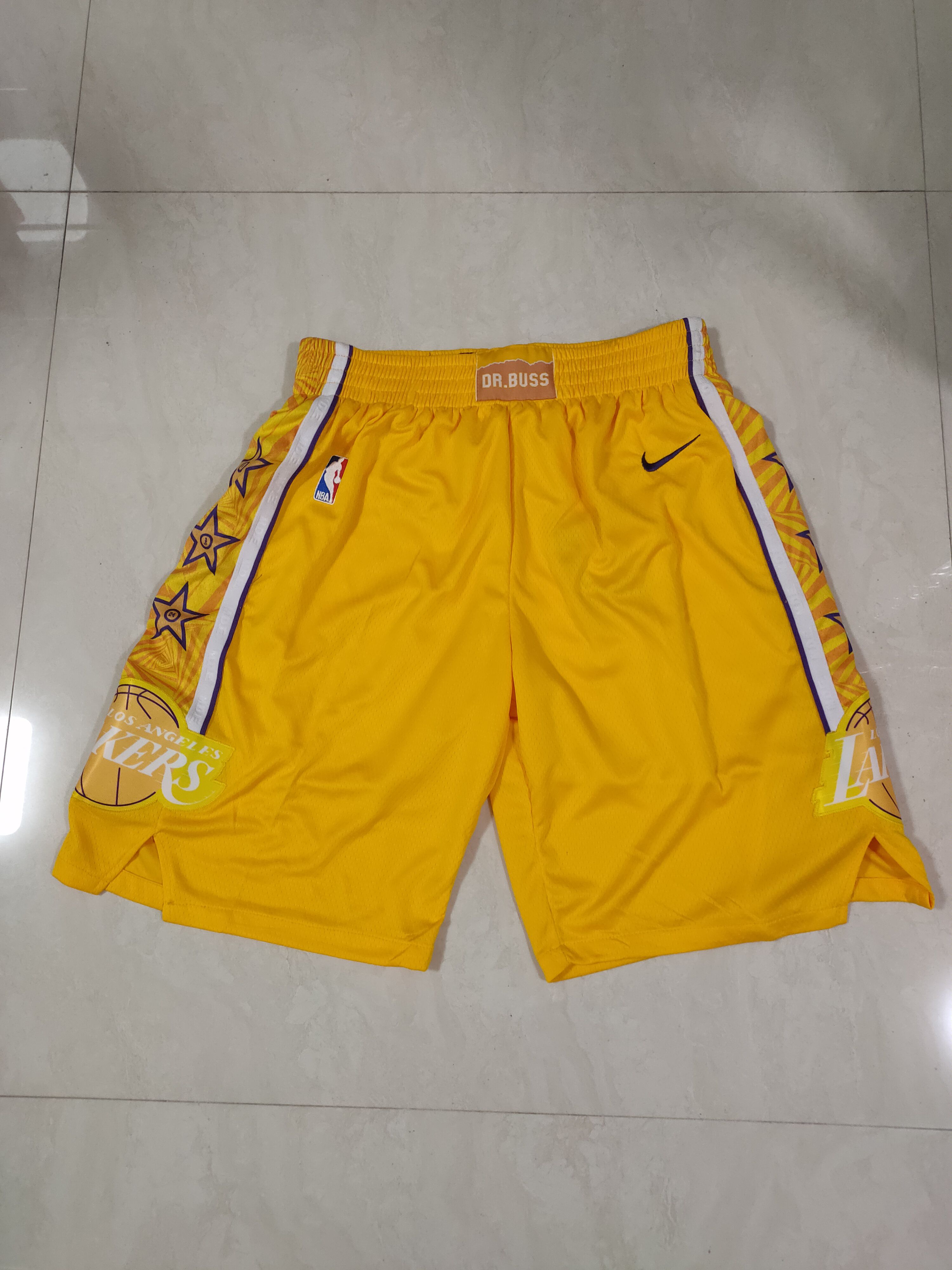 - Men NBA Los Angeles Lakers yellow Nike Shorts 0416