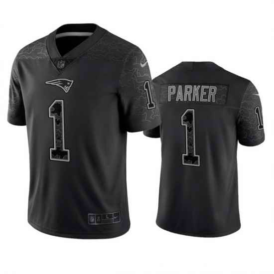 Men New England Patriots #1 DeVante Parker Black Reflective Limited Stitched Football Jersey
