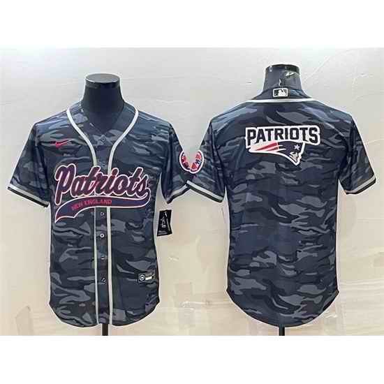 Men New England Patriots Grey Camo Team Big Logo With Patch Cool Base Stitched Baseball Jersey