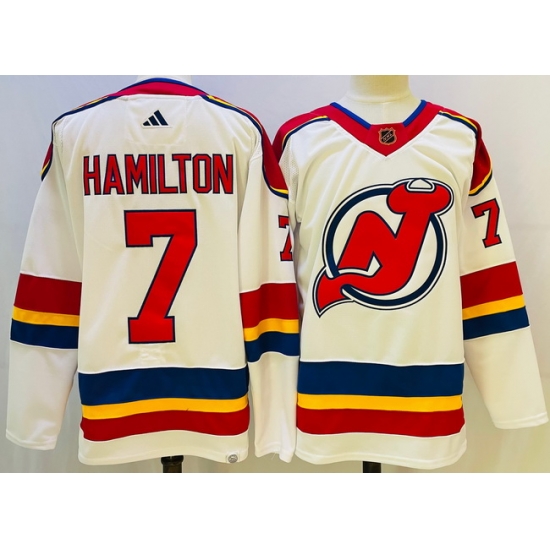 Men New Jersey Devils #7 Dougie Hamilton White 2022 23 Reverse Retro Stitched Jersey