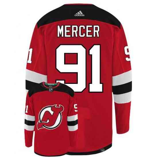 Men New Jersey Devils Dawson Mercer #91 Adidas Red Authentic NHL Hockey Jersey
