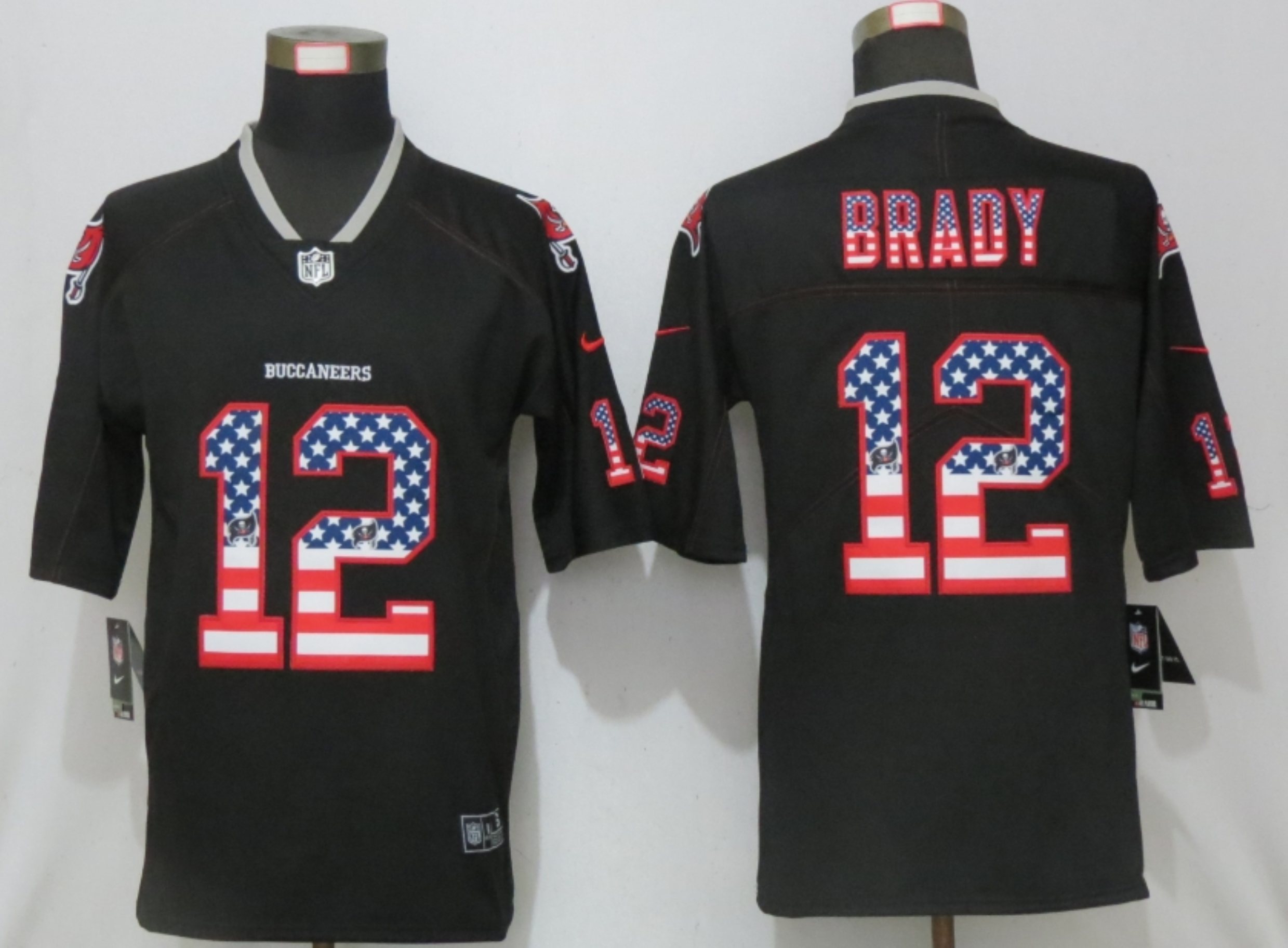Men New Nike Tampa Bay Buccaneers #12 Brady USA Flag Fashion Black Elite Jersey