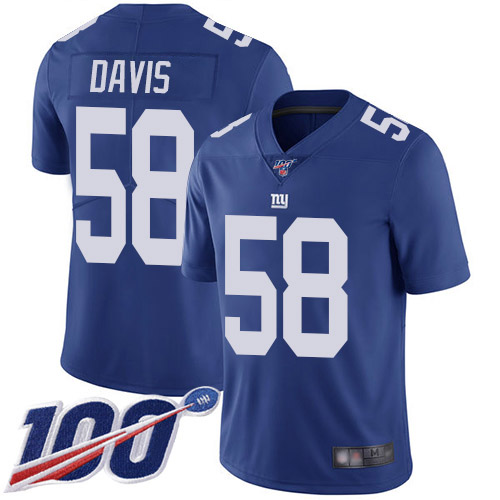 Men New York Giants #58 Tae Davis Royal Blue Team Color Vapor Untouchable Limited Player 100th Season Football NFL Jersey