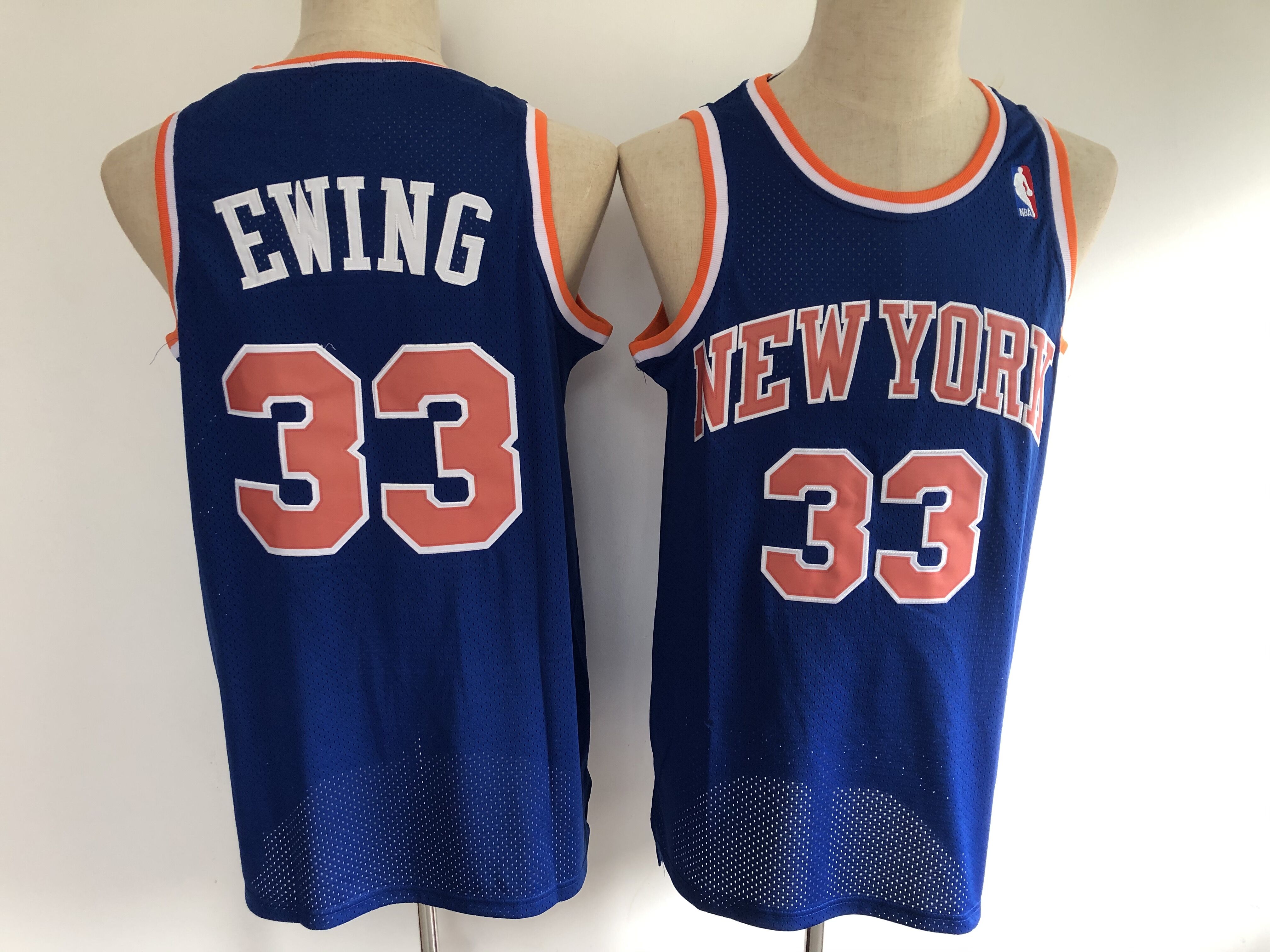Men New York Knicks #33 Ewing Blue Adidas NBA throwback Jersey