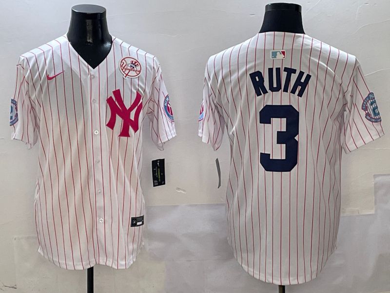 Men New York Yankees #3 Ruth White Stripe Jointly Name Nike 2025 MLB Jersey style 5