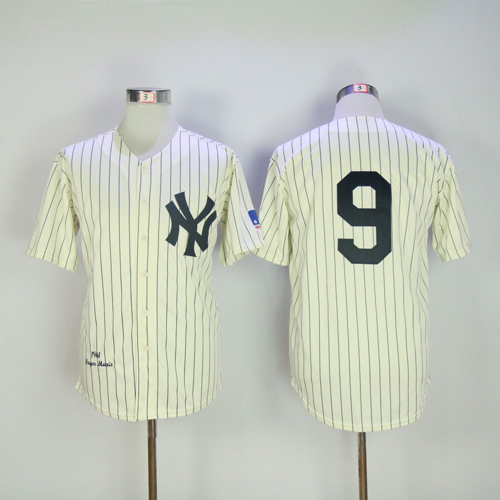 Men New York Yankees #9 No name Cream Throwback MLB Jerseys