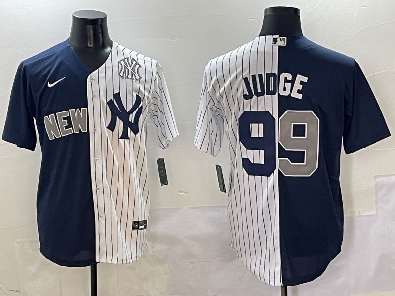 Men New York Yankees #99 Judge White Stripe Blue Game Nike 2025 MLB Jersey style 8