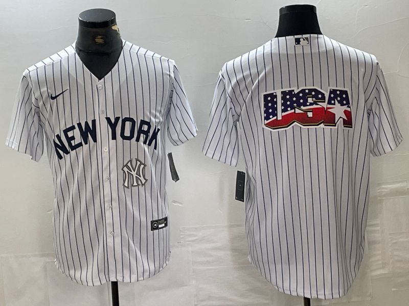 Men New York Yankees Blank White Stripe Fashion Game Nike 2024 MLB Jersey style 1