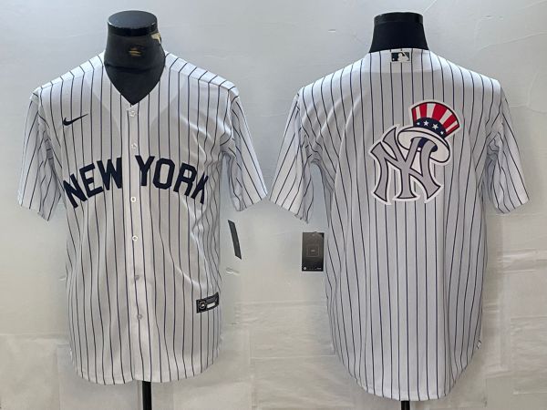 Men New York Yankees Blank White Stripe Game Nike 2024 MLB Jersey style 4