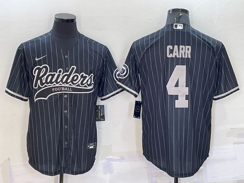 Men Oakland Raiders #4 Carr Black stripe 2022 Nike Co branded NFL Jerseys
