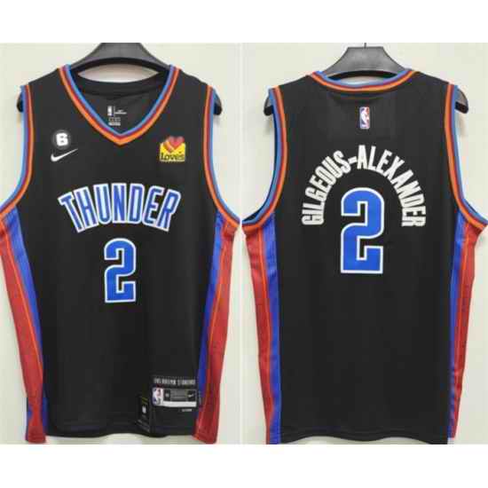 Men Oklahoma City Thunder #2 Shai Gilgeous Alexander Black With NO 6 Patch Stitched Basketball Jersey
