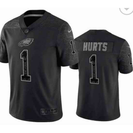 Men Philadelphia Eagles #1 Jalen Hurts Black Reflective Limited Stitched Jersey