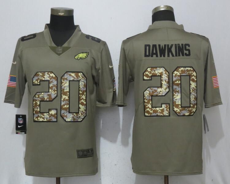 Men Philadelphia Eagles #20 Dawklns Olive Camo Carson Salute to Service Nike Limited NFL Jerseys