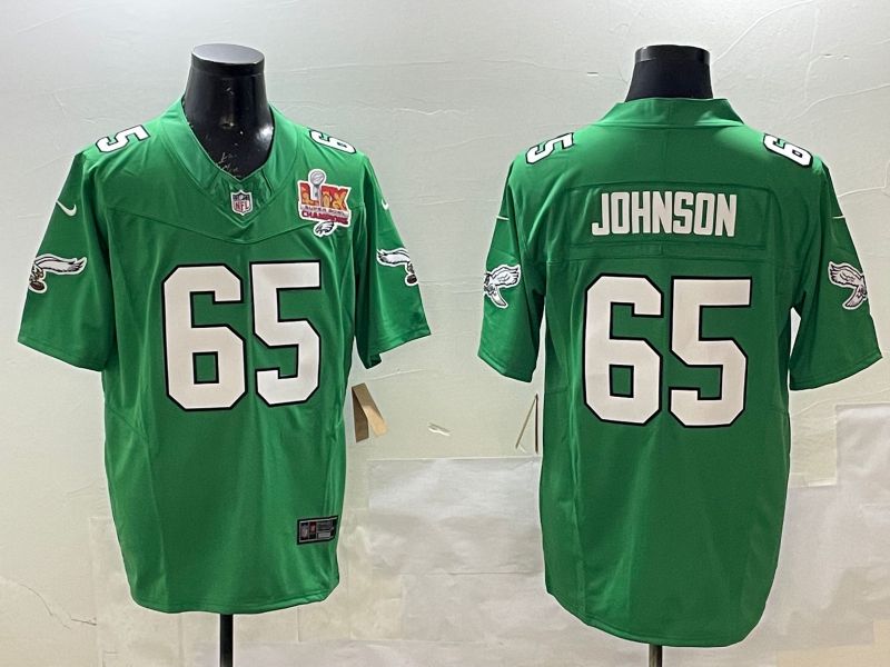 Men Philadelphia Eagles #65 Johnson Green Retro three generations 2025 Nike Limited NFL Jersey style 2