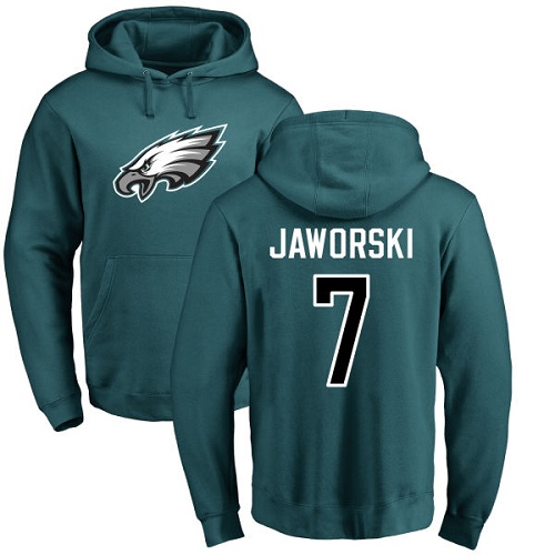 - Men Philadelphia Eagles #7 Ron Jaworski Green Name and Number Logo NFL Pullover Hoodie Sweatshirts