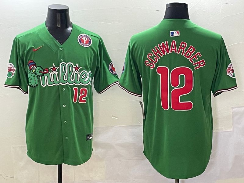 Men Philadelphia Phillies #12 Schwarber Green three generations Joint Name Nike 2025 MLB Jersey style 21