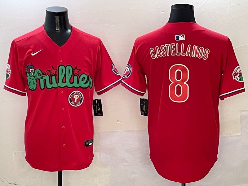 Men Philadelphia Phillies #8 Castellanos Red three generations Joint Name 2025 Nike MLB Jersey style 7
