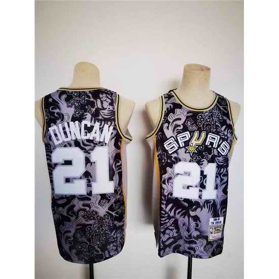 Men San Antonio Spurs 21 Tim Duncan 1998 99 Black Lunar New Year Tiger CNY 4 #0 Throwback Stitched Jersey