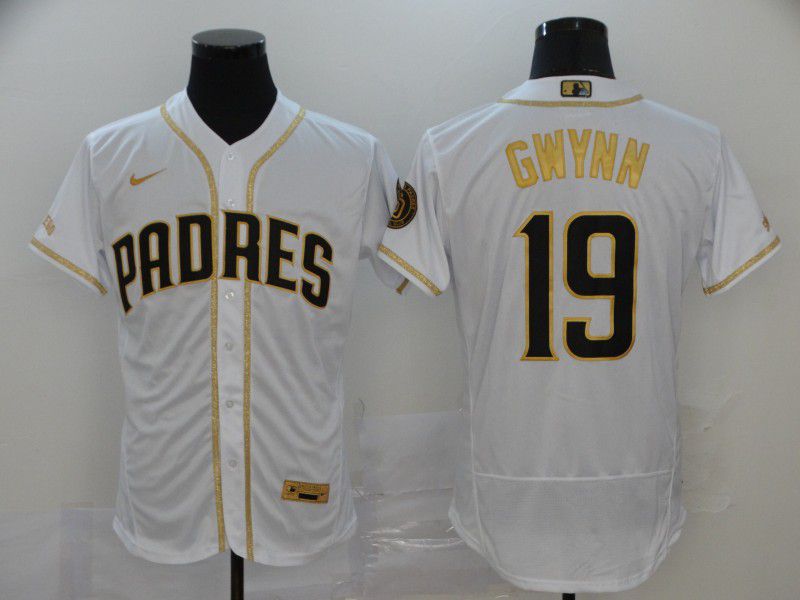 Men San Diego Padres #19 Gwynn White Retro gold character Nike Elite MLB Jerseys