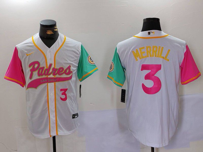 Men San Diego Padres #3 Merrill White Joint Name 2024 Nike MLB Jersey style 3