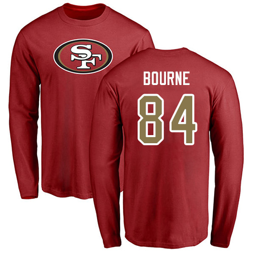 - Men San Francisco 49ers Red Kendrick Bourne Name and Number Logo #84 Long Sleeve NFL T Shirt
