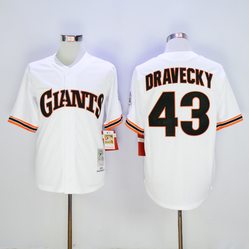 Men San Francisco Giants #43 Dravecky White Throwback 1989 MLB Jerseys