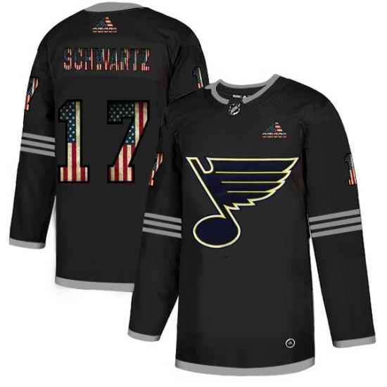 Men St.Louis Blues #17 Jaden Schwartz Black USA Flag Fashion Adidas Jersey