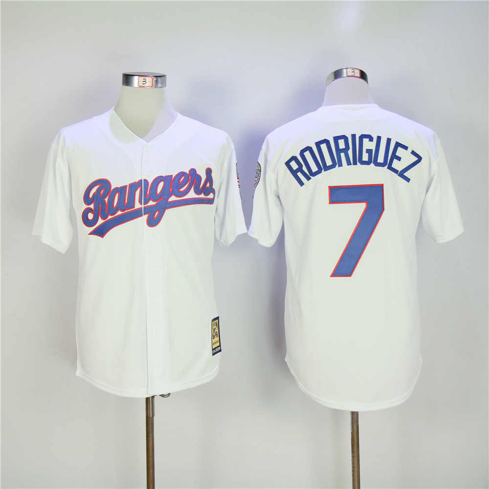 Men Texas Rangers #7 Rodriguez White Throwback MLB Jerseys