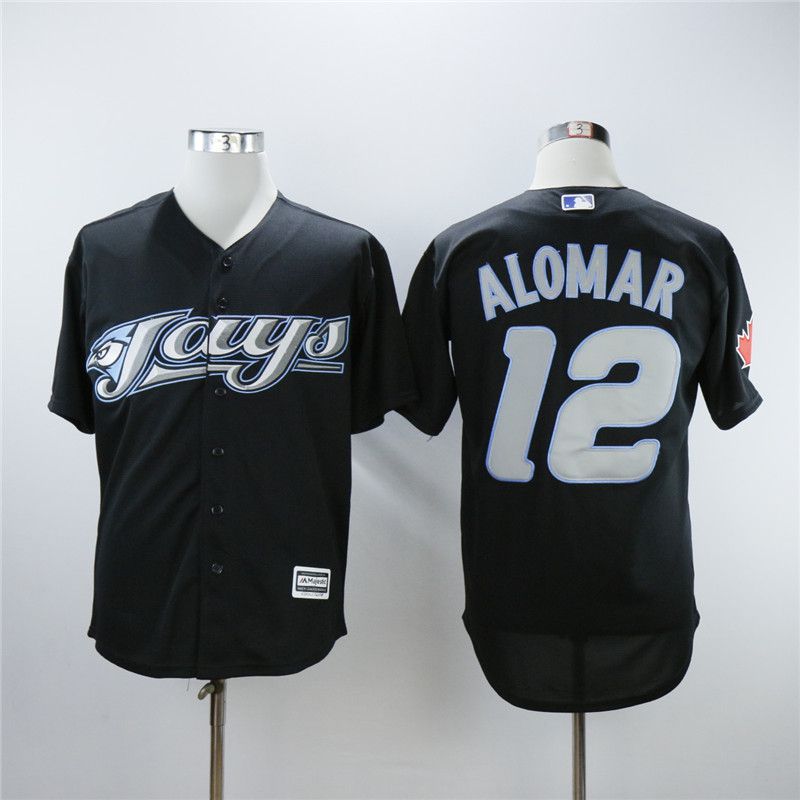 Men Toronto Blue Jays #12 Alomar Black Throwback MLB Jerseys