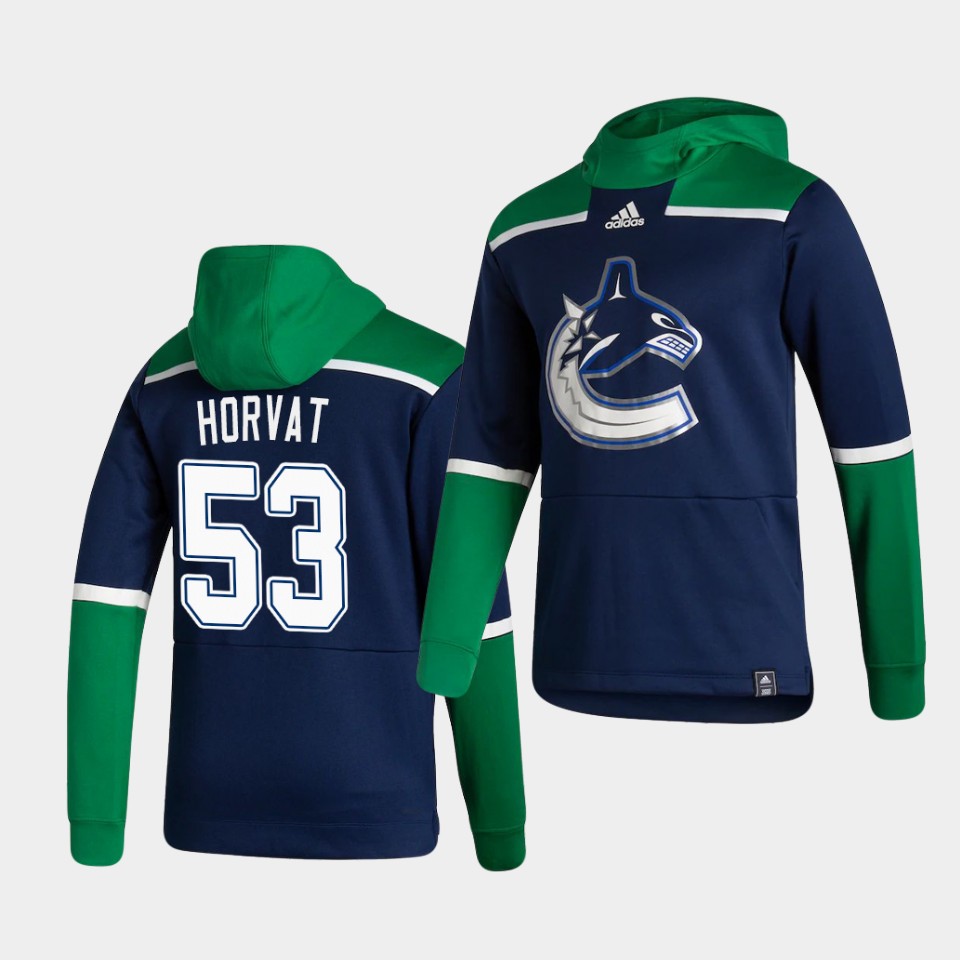 Men Vancouver Canucks #53 Horvat Blue NHL 2021 Adidas Pullover Hoodie Jersey