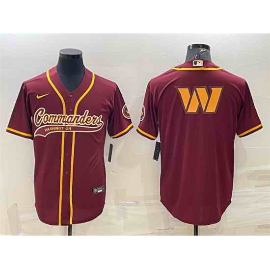 Men Washington Commanders Burgundy Team Big Logo With Patch Cool Base Stitched Baseball Jersey