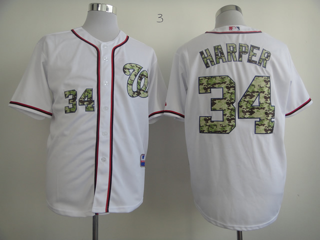 Men Washington Nationals #34 Harper White Camo MLB Jerseys