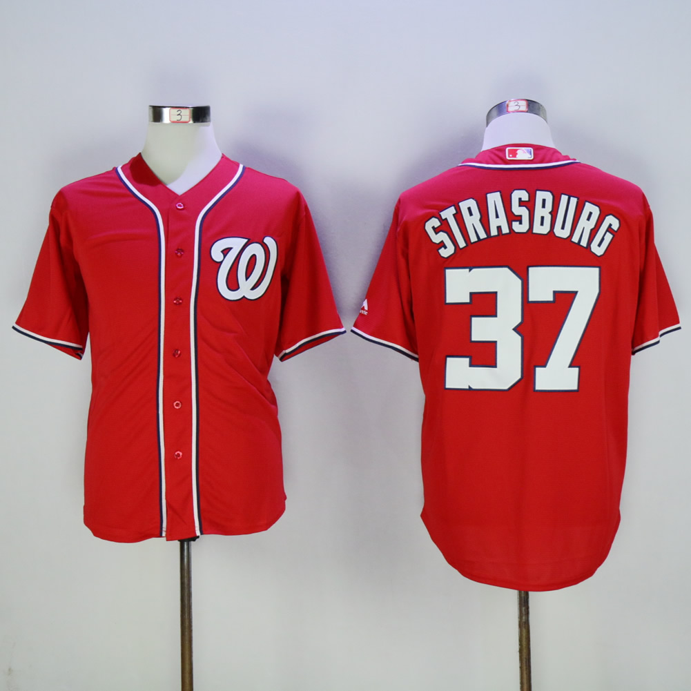 Men Washington Nationals #37 Strasburg Red MLB Jerseys