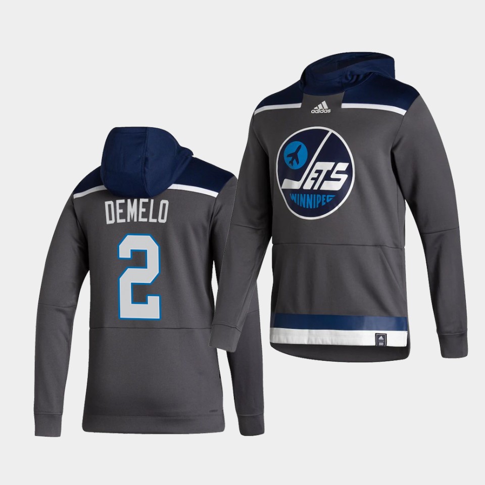 Men Winnipeg Jets #2 Demelo Grey NHL 2021 Adidas Pullover Hoodie Jersey