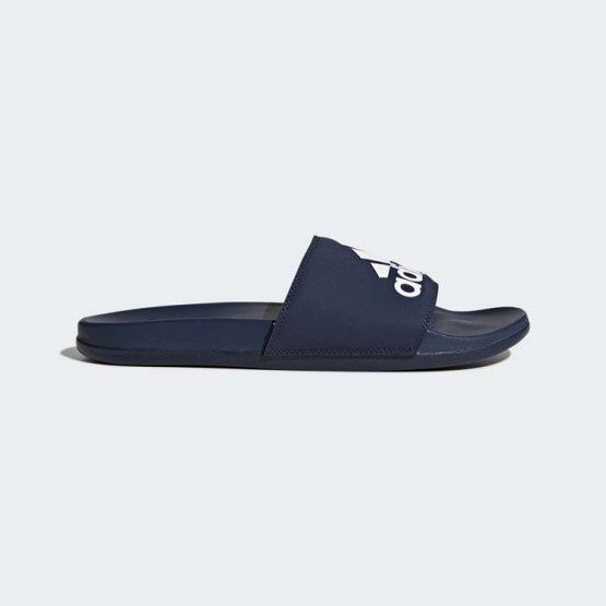 Mens Collegiate Navy/White Adidas Adilette Cloudfoam Plus Logo Slides Training Shoes 273QKSFL