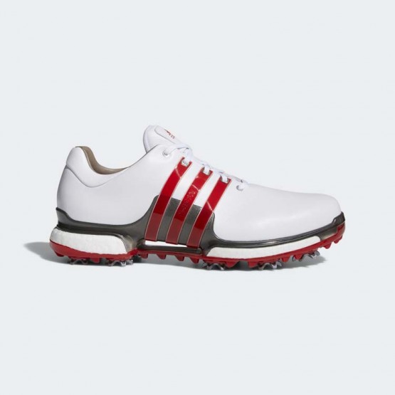 Mens White/Scarlet Adidas Tour 360 Boost 2.0 Golf Shoes 752QNJXK