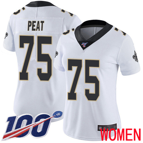 New Orleans Saints Limited White Women Andrus Peat Road Jersey NFL Football #75 100th Season Vapor Jersey