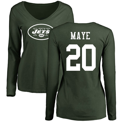New York Jets Green Women Marcus Maye Name and Number Logo NFL Football #20 Long Sleeve T Shirt